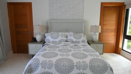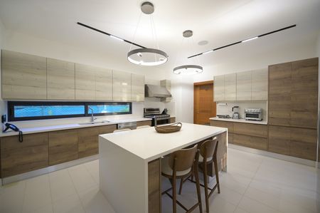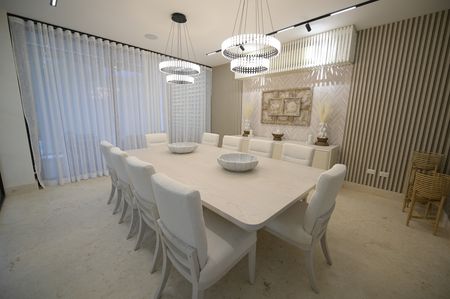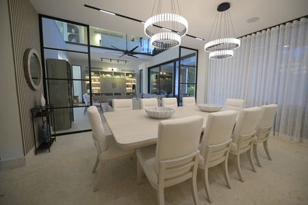 This elegant property boasts 5 bedrooms, each with a private bathroom and walk-in closet, including two master suites — one on each floor — for added comfort and flexibility. The open-concept design features double-height ceilings in the living and dining areas, allowing for a bright and spacious ambiance. The high-end modular kitchen is a chef's dream, complete with Caesarstone countertops, a central island, and premium appliances. Outdoor living is redefined with a 40.15 m² terrace that extends to a private 18 m² swimming pool, featuring a hydromassage system, outdoor shower, and half-bath for convenience. The home is smart-home ready with centralized intelligent system capabilities, high-efficiency air conditioning, and a whole-house WiFi network powered by 7 access points. Additional features include covered parking for 2 vehicles with space for up to 6 cars, a dedicated pump room, and service quarters. Finishes such as Brazilian oak carpentry, coralina stone floors, and sleek metalwork add to the sophisticated charm of this residence.